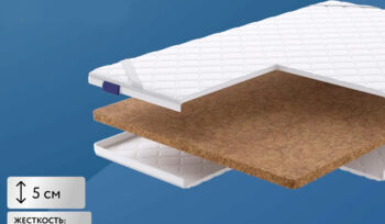Внутри топпера размещены два слоя пен различной природы. Первой установлена массажная прослойка, а поверх нее проложен натуральный латексный слой.